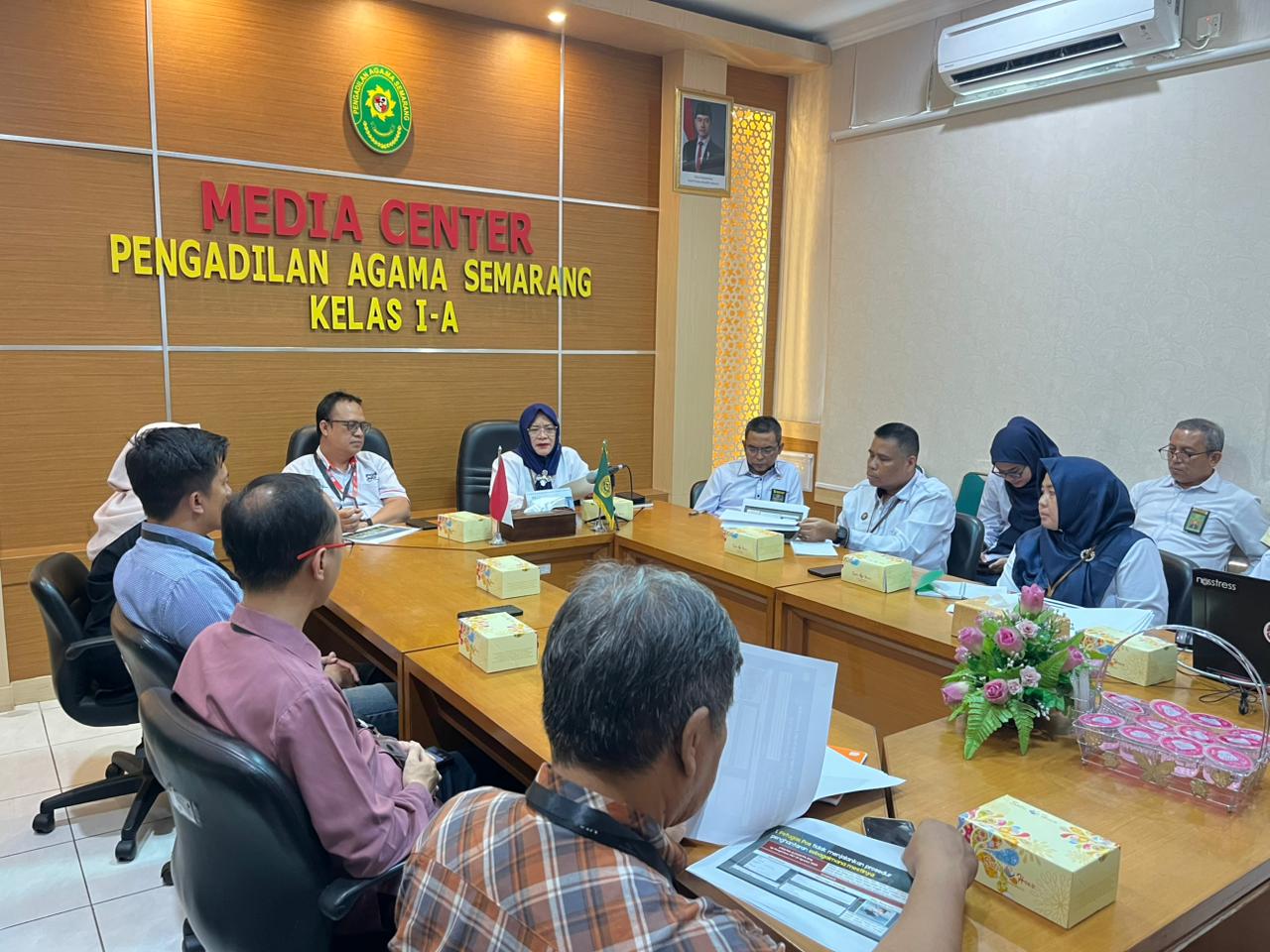 Semarang, 6 Oktober 2025 — Pengadilan Agama (PA) Semarang melaksanakan kegiatan Monitoring dan Evaluasi (Monev) bersama PT Pos Indonesia Cabang Semarang pada Senin (6/10/2025), bertempat di Media Center PA Semarang.